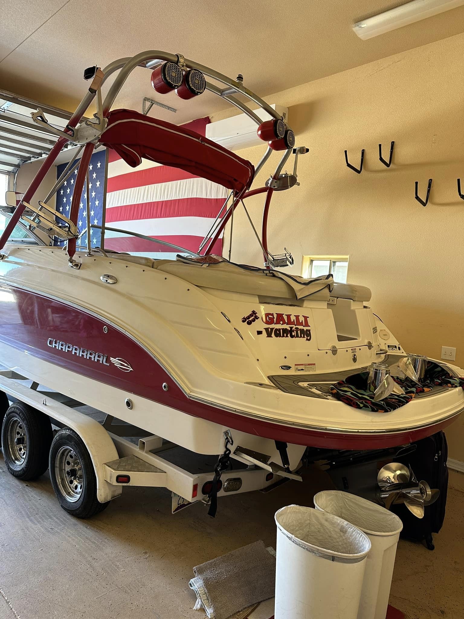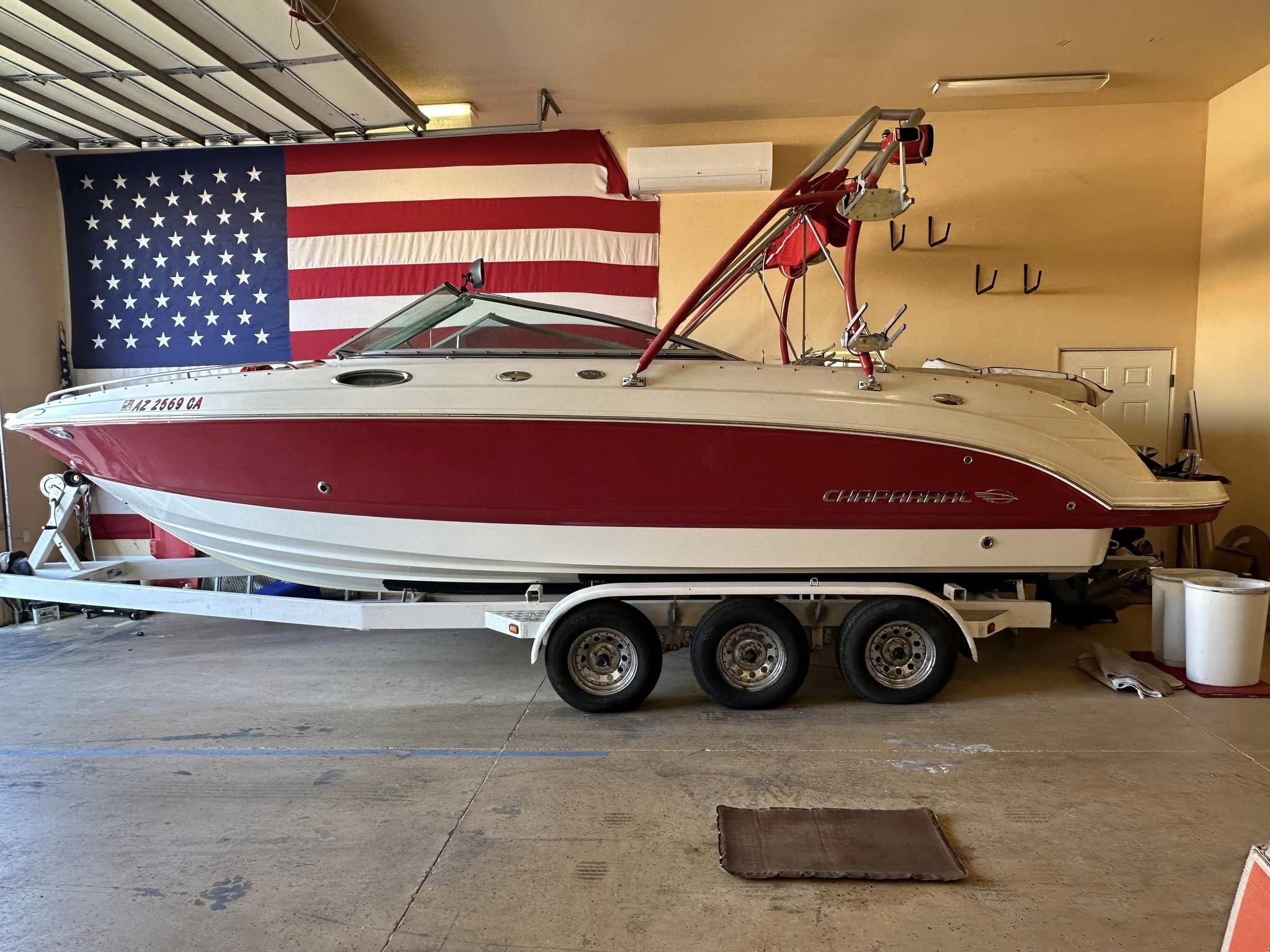 2007 CHAPARRAL 256 SSI 26.5″ LONG, OPEN BOW, DEEP V, 8.1 LITER (496) VOLVO PENA DUO PROP OUTDRIVE. FULLY FUNCTIONAL BATHROOM, SPEED PASS, GATOR STEP FLOORING, CUSTOM TOWER WITH SOUND SYSTEM, FULL CANVAS COVER AND SNAP CANVAS COVER COMES WITH CUSHION INSERTS AND TABLE. 953 HOURS INTERIOR AND EXTERIOR IN GREAT CONDITION. TRIPLE AXLE ZIEMAN TRAILER.